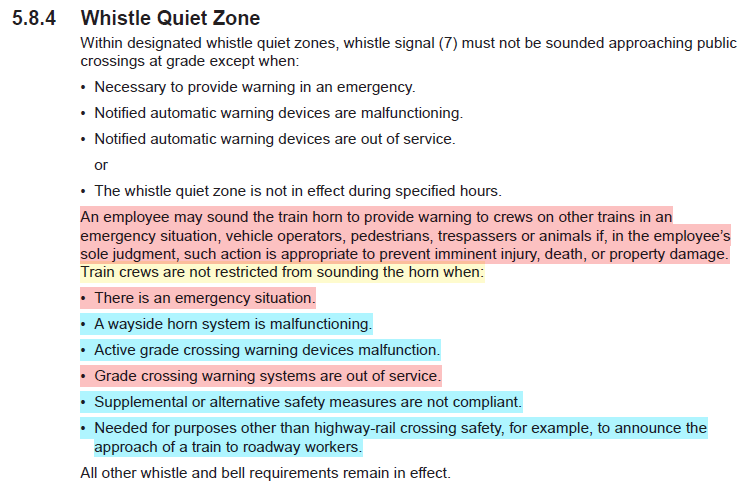 Answer: -To warn other train crews of an emergency situation -To warn others that an automatic warning device is out of service -To warn pedestrians and animals of imminent injury or death -To warn vehicle operators of potential property damage